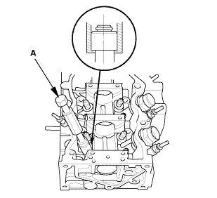 1. Using an appropriate-sized socket (A) and a plastic mallet (B), lightly tap the spring retainer to loosen the valve cotters.