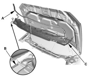 1. If necessary, install the hood rear seal (A).