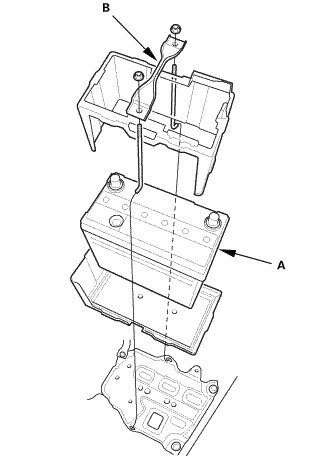 3. Connect the negative cable and battery sensor (B) to the battery.