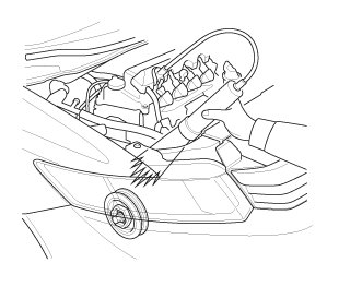 Start the engine. Hold the engine speed at 3,000 rpm without load (A/T in P or N, M/T in neutral) until the radiator fan comes on, then let it idle.