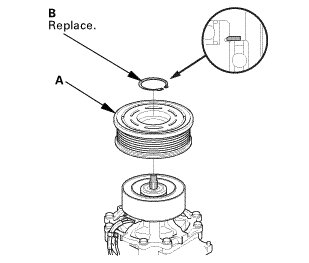 * After reinstallation, cycle the A/C clutch approximately 20 times by running the engine at 1,500-2,000 rpm and setting the A/C system to MAX A/C mode. This procedure seats the clutch sliding surfaces, and increases clutch torque capacity.
