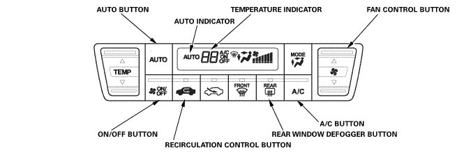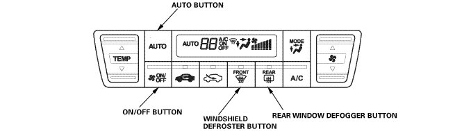 2. Press and hold both the AUTO and WINDSHIELD DEFROSTER buttons, then turn the ignition switch to ON (II).