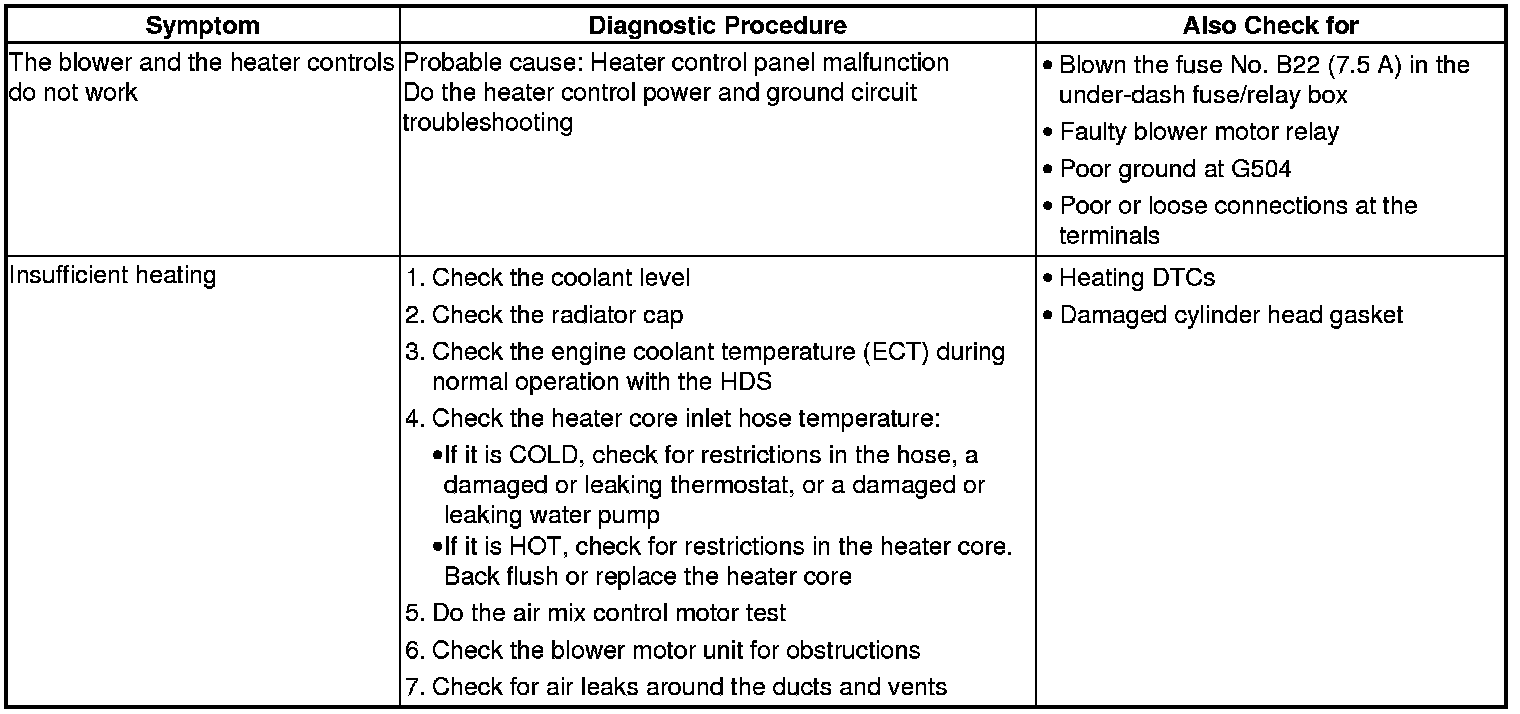 Heating System Symptom Troubleshooting Index