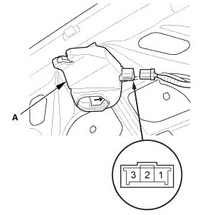 2. If the continuity is not as specified, the trunk lid latch switch is faulty; replace the trunk lid latch (A).