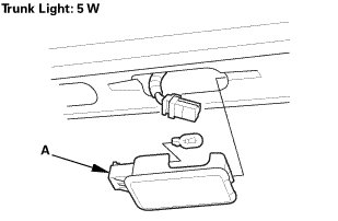 2. Carefully pry off the trunk light (A) to the side to release the hook and pull out the trunk light.