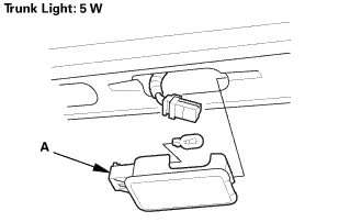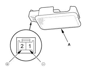 1. Check for continuity between terminals No. 1 (-) and No. 2 (+). If there is no continuity, check the bulb. Is the bulb is OK, replace the trunk light (A):