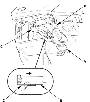 3. Remove the TPMS control unit (B) from the bracket (C).