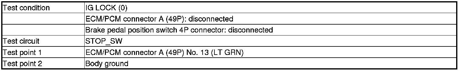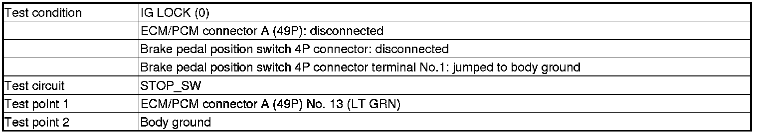 -NO- Repair an open in the STOP_SW wire between the ECM/PCM (A13) and the brake pedal position switch.
