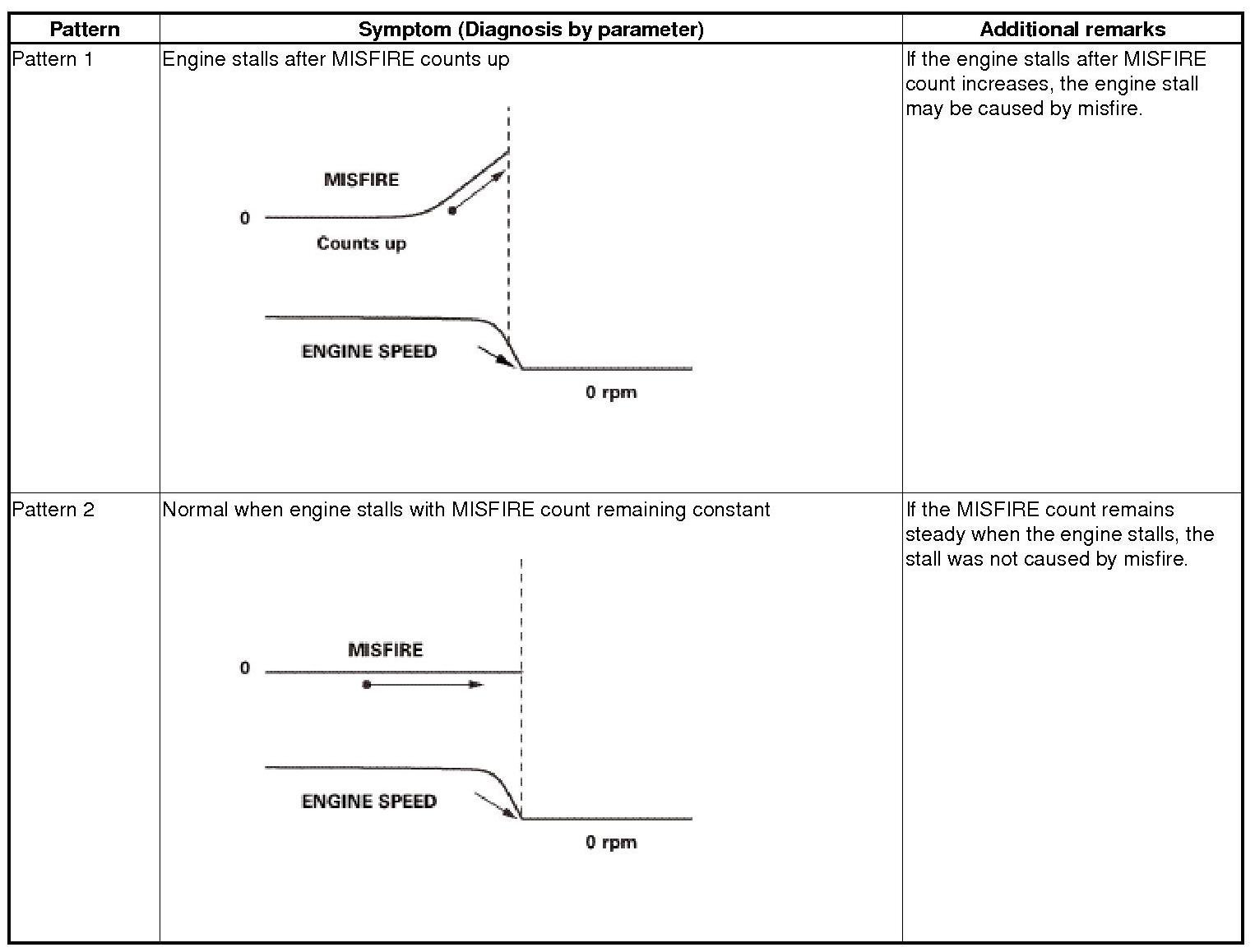 -Pattern 2 and 4- Go to step 10 (diagnosis by parameter (MISFIRE)).