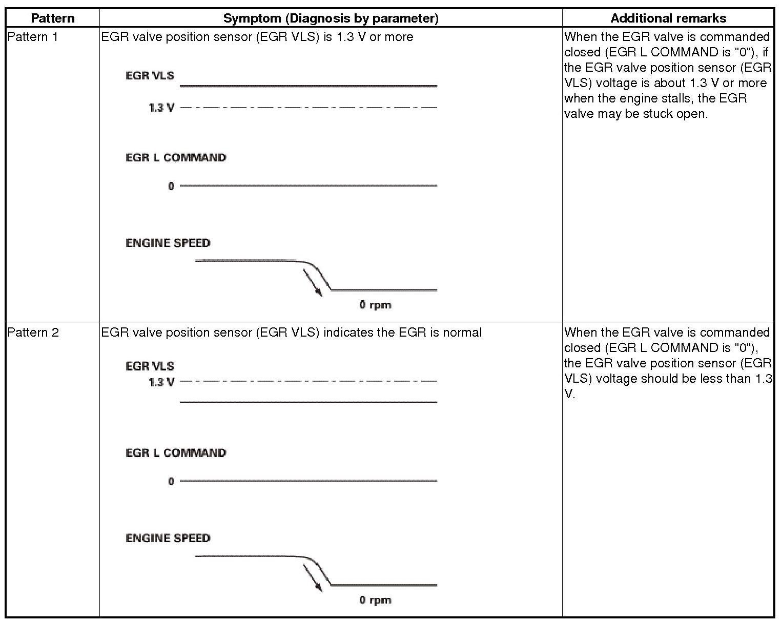 -Pattern 2- Go to step 11 (diagnosis by parameter (EGR valve position sensor (EGR VLS))).