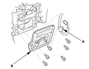 1. Remove the harness clamp (A) and the oil/air separator (B).