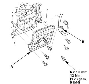 1. Install the intake manifold assembly (A) with new gaskets (B).