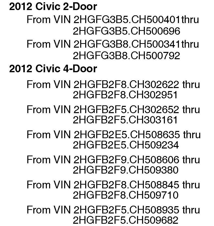 See VEHICLES AFFECTED