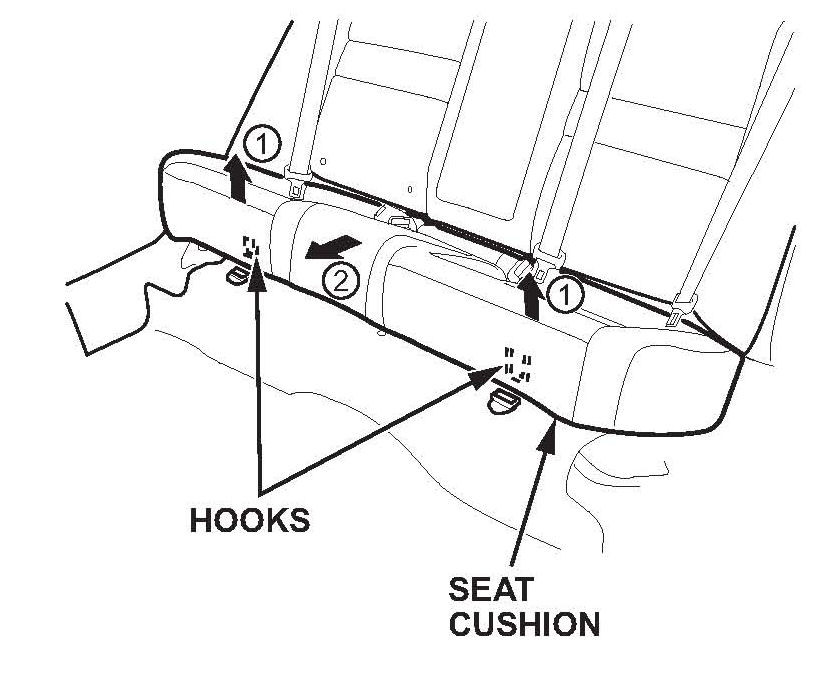 ^ Then pull up to release the rear seat hooks, and remove the rear seat cushion.