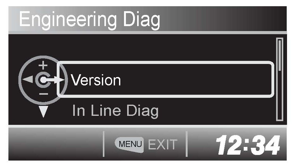 4. Press and hold the MENU button, and press the SOURCE button five times to enter the engineering diagnosis mode. Highlight Version, then press the SOURCE button.