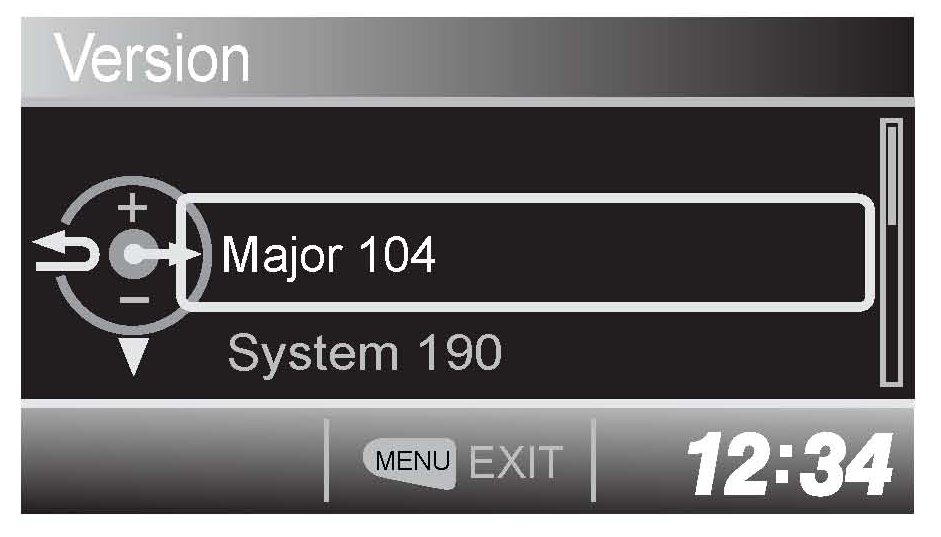 10. Repeat steps 3-5 to check that the software is updated to MAJORV105. If the software is not updated, go to step 1 and repeat this procedure.
