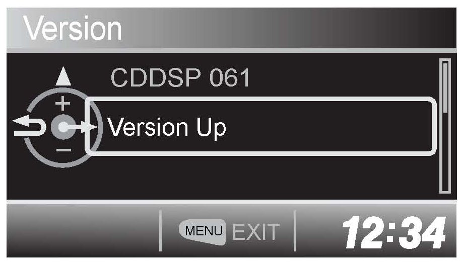 6. Scroll down, highlight Version Up, and press the SOURCE button.