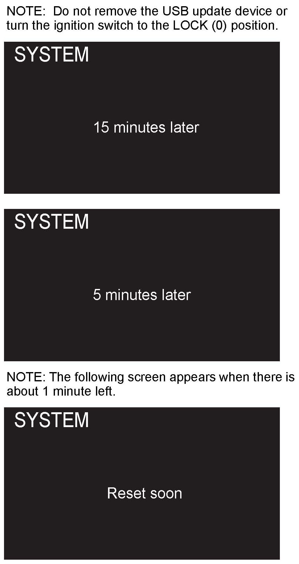 ^ To prevent i-MID damage, do not operate anything electrical (audio system, brakes, A/C, power windows, moonroof, etc.) during the update.