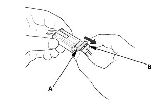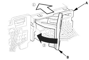To reconnect the connector (A), push in on the connector. As the connector is pressed in, the lever (B) moves to the locked position.