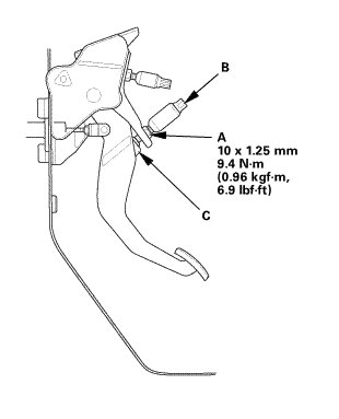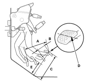 NOTE: Measure the clutch pedal height from middle of the clutch pedal cover or the clutch pedal pad cover (C).