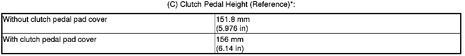 *: Measure the clutch pedal disengagement height from right side middle of the clutch pedal cover or the clutch pedal pad cover (D) to the floor without the insulation.