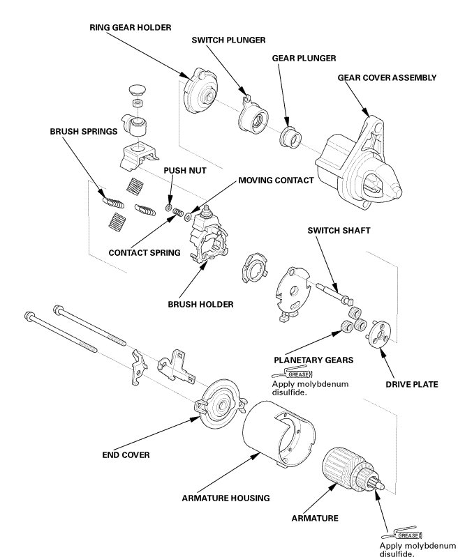 1. Measure the brush length. If it is shorter than the service limit, replace the brush holder assembly.