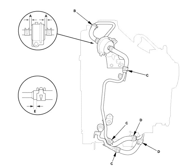 1. Install the ATF hoses over the ATF lines with the clips at appropriate points in reference to the following list.
