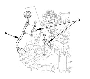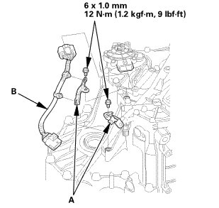 2. Install the transmission range switch subharness (B).
