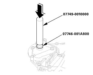 1. Install the selector control shaft bearing flush with the end cover using the driver handle and the 22 x 24 mm attachment.