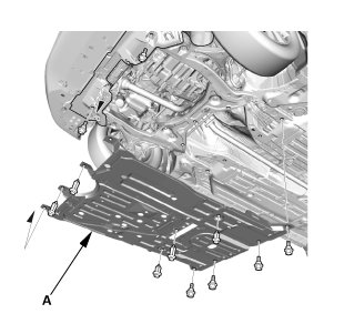 1. Tighten the transmission mount bracket mounting bolt and nuts (A).