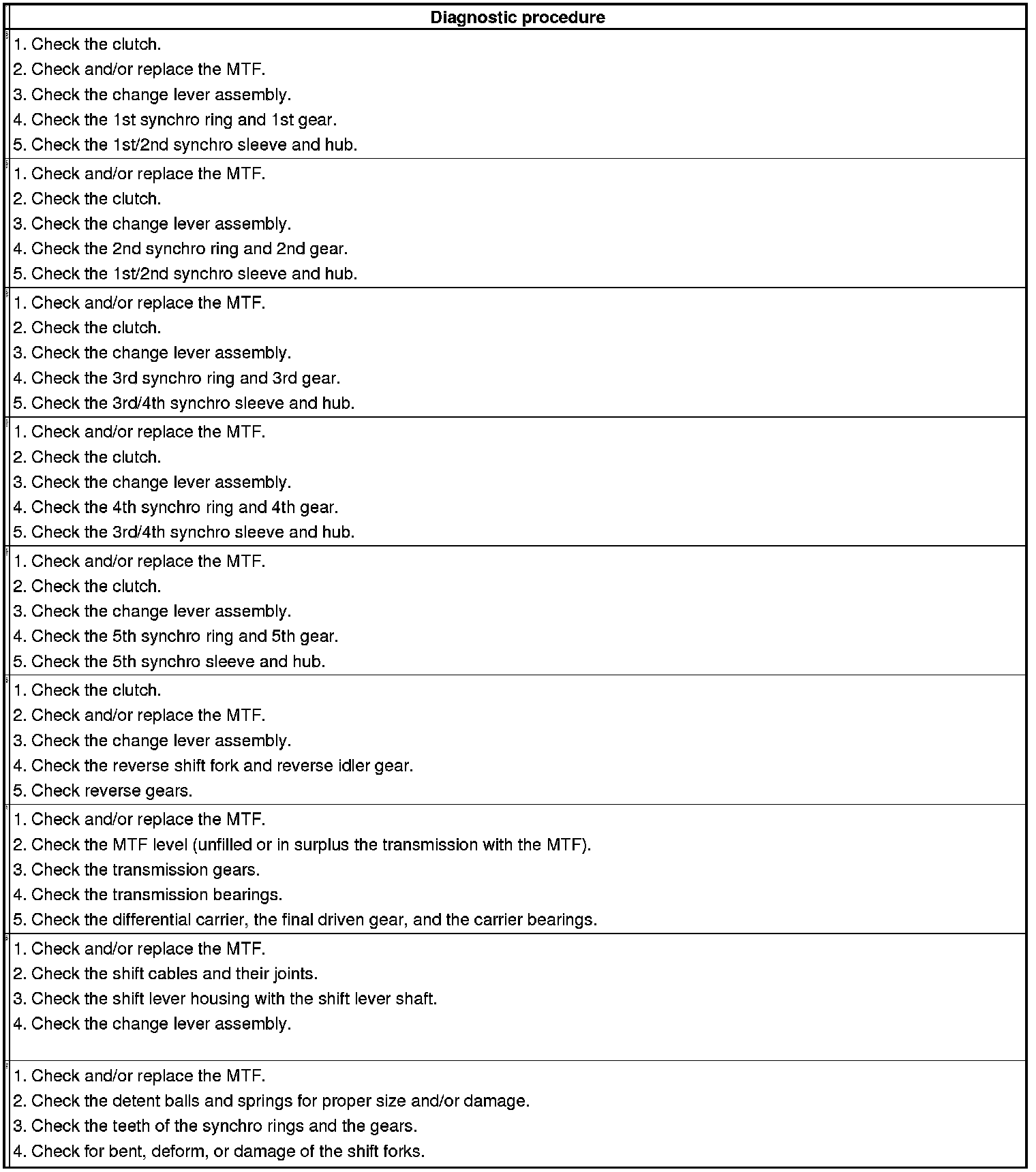Manual Transmission Symptom Troubleshooting Index