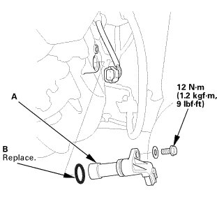 1. Install the output shaft (countershaft) speed sensor (A) with a new O-ring (B).