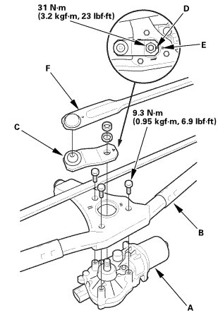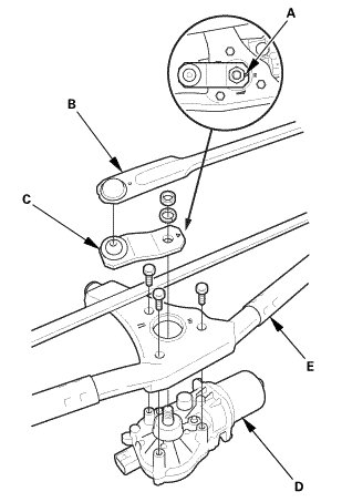 3. Remove the wiper motor (D) from the linkage (E).