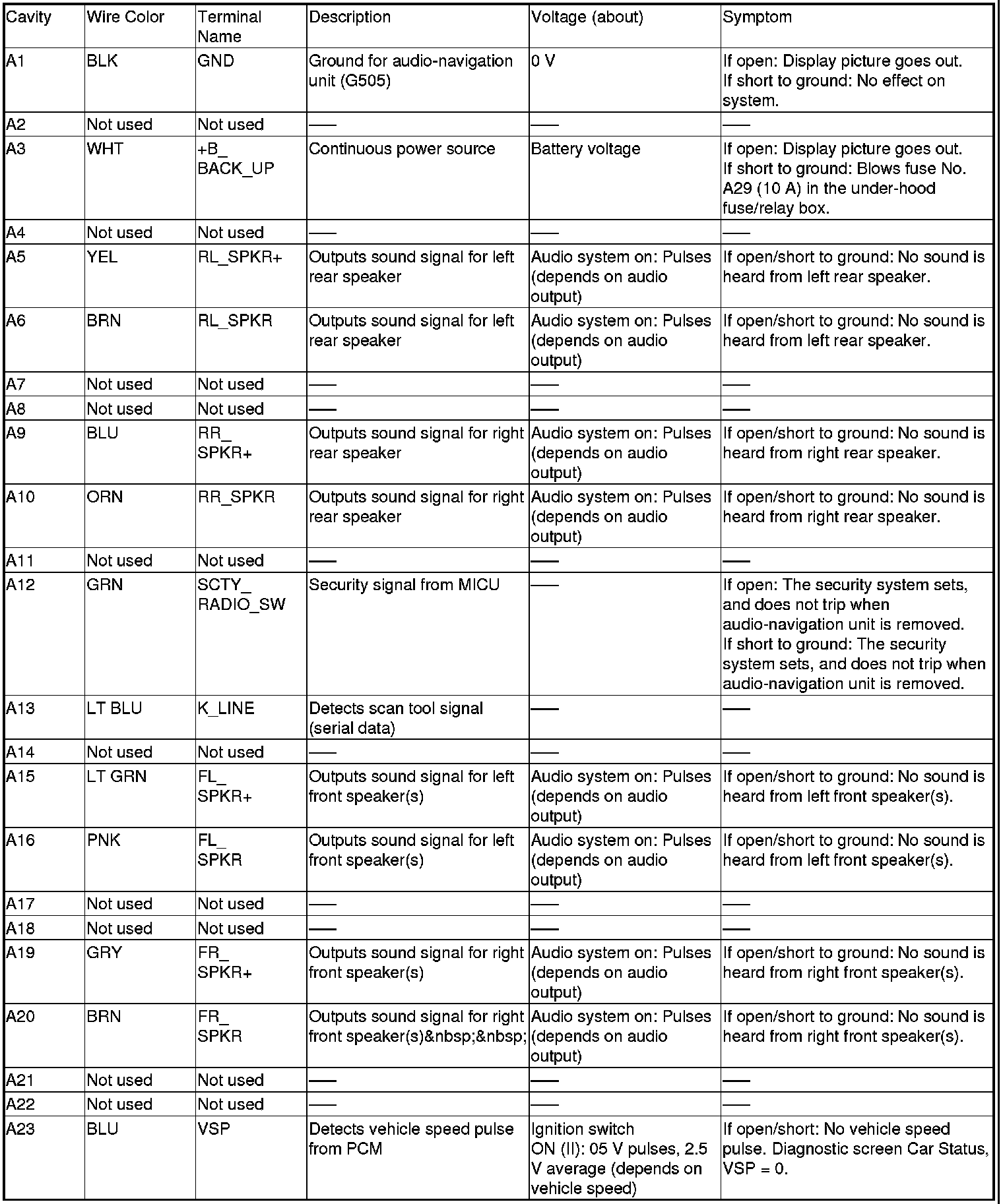 AUDIO-NAVIGATION UNIT CONNECTOR A (24P) (without premium audio)