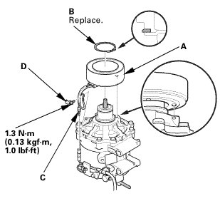1. Install the field coil (A).