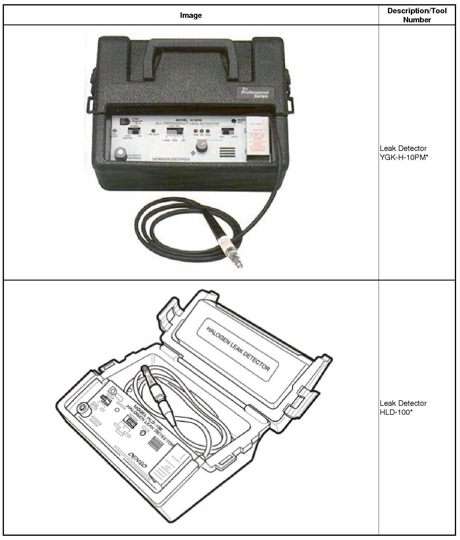 * Halogen leak detectors are sensitive to chemicals: windshield washing solutions, solvents/cleaners, and some vehicle adhesives. Keep these chemicals out of the area when doing leak detection.