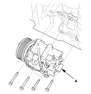 2. Remove the A/C compressor (A).