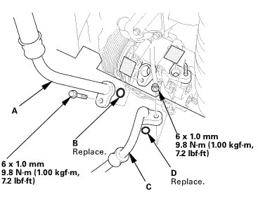 * Replace the O-rings with new ones at each fitting, and apply a thin coat of refrigerant oil before installing them. Be sure to use the correct O-rings for HFC-134a (R-134a) to avoid leakage.
