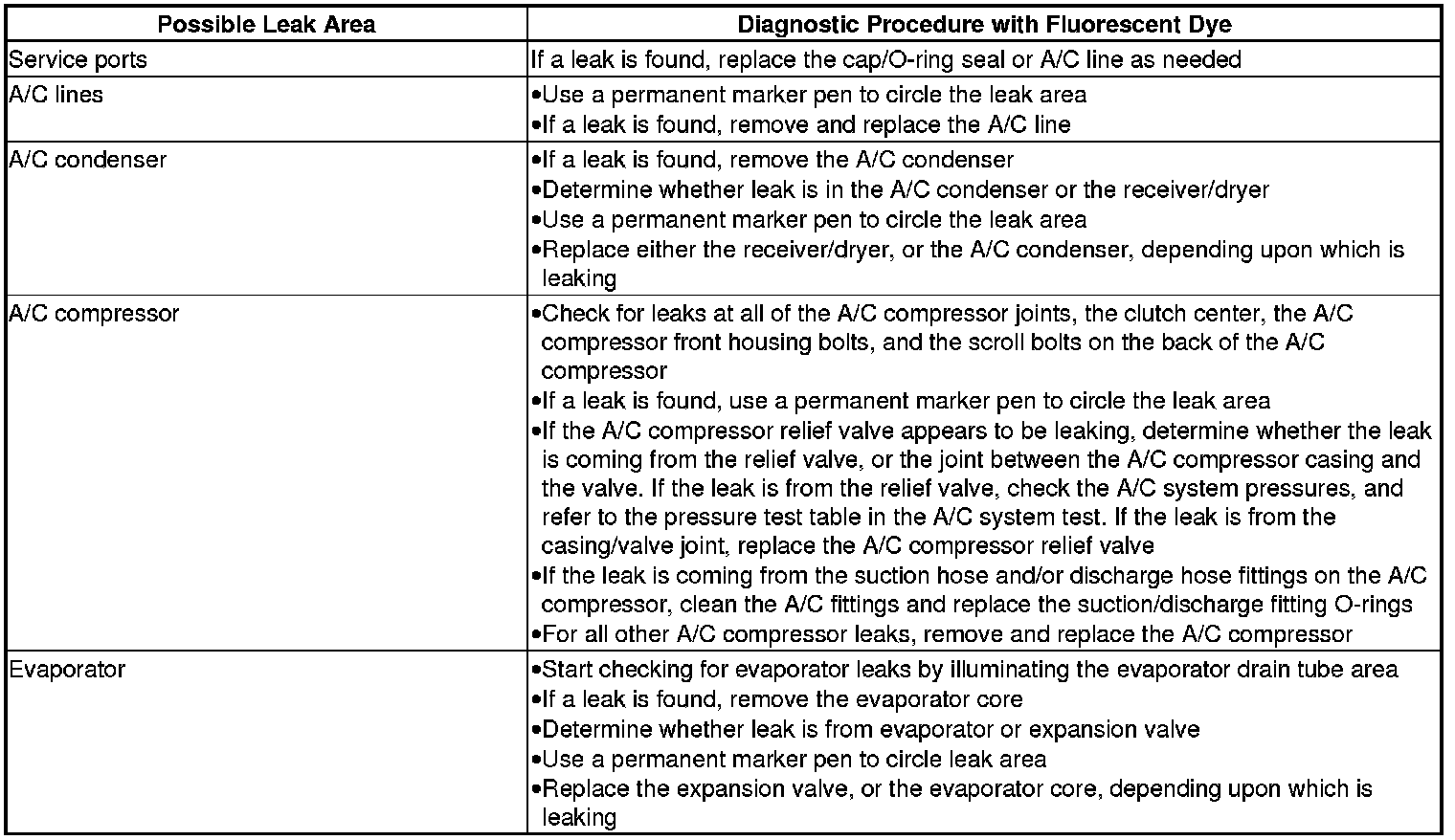 * Small leaks may take up to 1 week of vehicle operation (with normal A/C use) to become visible.