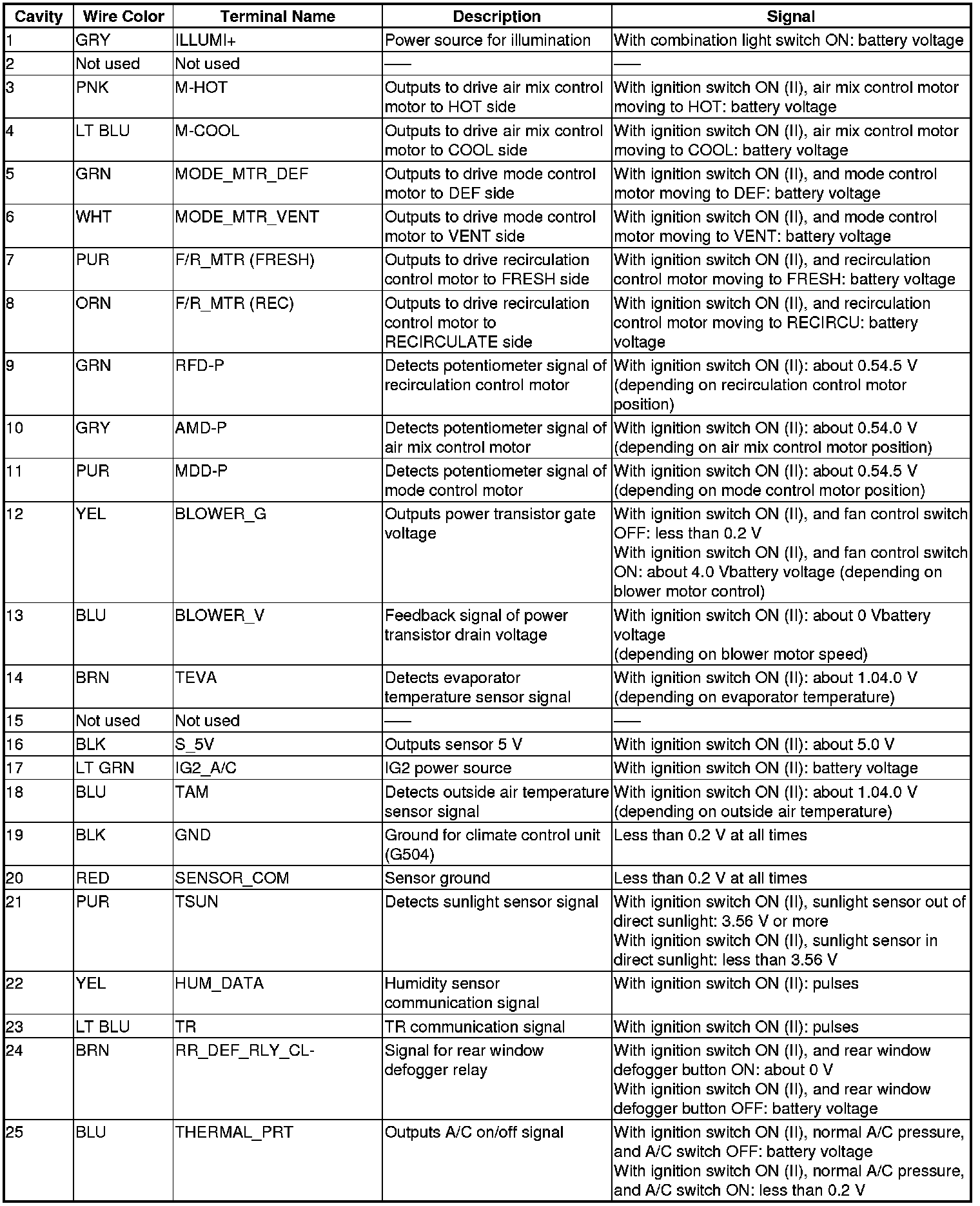 Climate Control Unit Inputs and Outputs