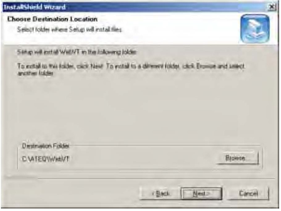 9. The InstallShield Wizard asks you to select a destination for the VT55 files. Select Next.