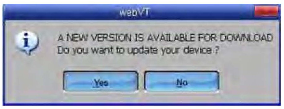 7. If a new software version is available, you'll see a message asking if you want to update the VT55. Select Yes.