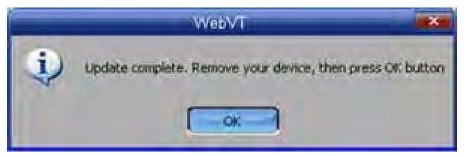 10. The VT55 begins updating. When the VT55 is finished updating, you'll see a message stating the update is done. Disconnect the VT55, then select OK.