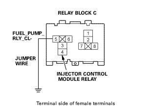 -NO- Repair an open in the FUEL_PUMP_RLY_CL- wire between the the injector control module relay and the PCM (A40).