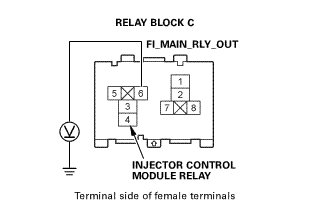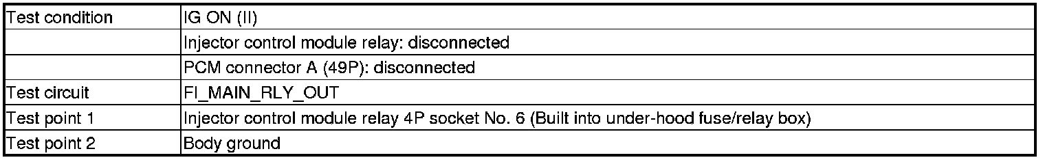 -NO- Repair an open in the FI_MAIN_RLY_OUT wire between the injector control module relay and PGM-FI main relay 1.