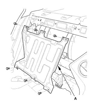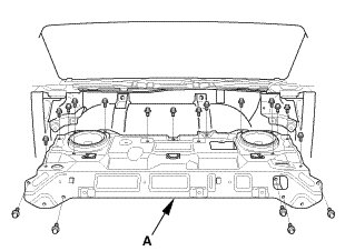 1. Disconnect the speaker connectors, and remove the rear parcel cover (A).