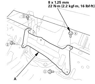 1. Remove the center seat belt buckle bolt (A) at the floor.