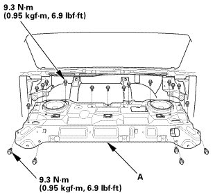 1. Install the rear parcel cover (A), and reconnect the speaker connectors.