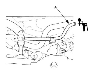 11. Within 1 minute, check for a leak at the vent hose outlet inside the fuel pipe protector (A).