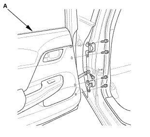1. Remove the left rear door assembly (A).